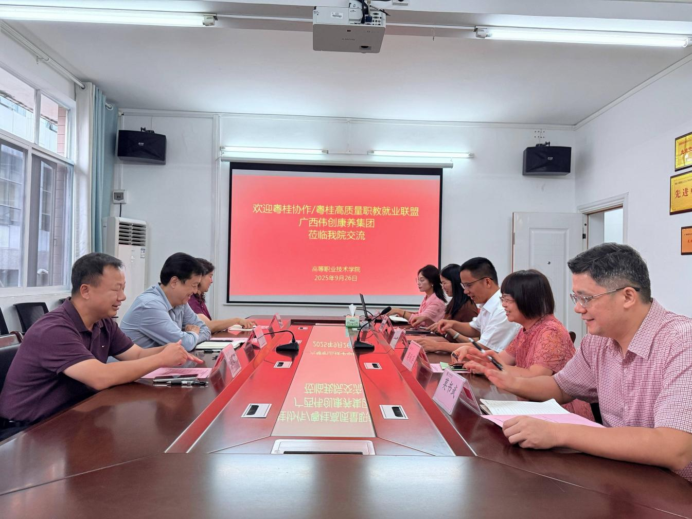 9月26日下午,粤桂协作/粤桂高质量职教就业联盟及广西伟创康养集团一行到williamhill开展院企合作交流。公司副经理林展、莫税英及相关科室负责人参加交流座谈会。会议由林展主持。